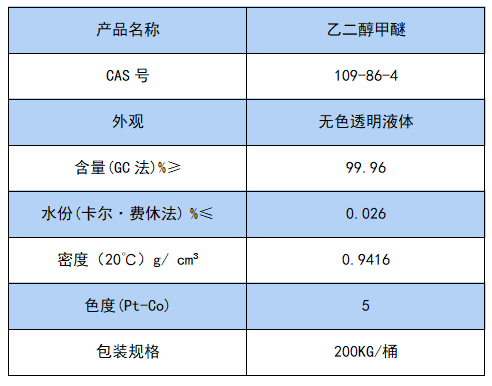 乙二醇甲醚是无色透明液体,具有令人愉快的气味。 与水、乙醇、乙醚、甘油、丙酮、N,N-二甲基甲酰胺混溶。